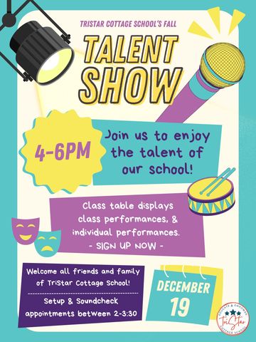 Invite your friends and family to join us for a night of celebration as we enjoy some of the talent here at TriStar. We will have table displays in the lobby of some of the classes from this semester. On stage, our Choir & Acting classes will perform along with individuals who want to showcase their talent.