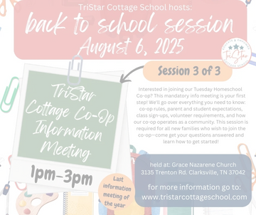 Co-op? This mandatory info meeting is your first step! We'll go over everything you need to know: co-op rules, parent and student expectations, class sign-ups, volunteer requirements, and how our co-op operates as a community. This session is required for all new families who wish to join the co-op—come get your questions answered and learn how to get started!