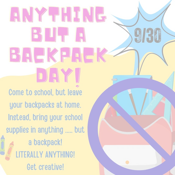 Let's get creative! Grab your school supplies, but instead of putting them in your trusty backpack... select anything else! I do mean anything! Guitar case? Shopping cart? Baby carrier? Cat crate? Get creative!